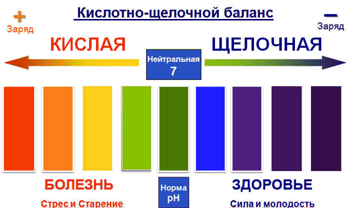 На шкале отображен уровень Ph и его значение для организма. Пить Водородную воду крайне важно