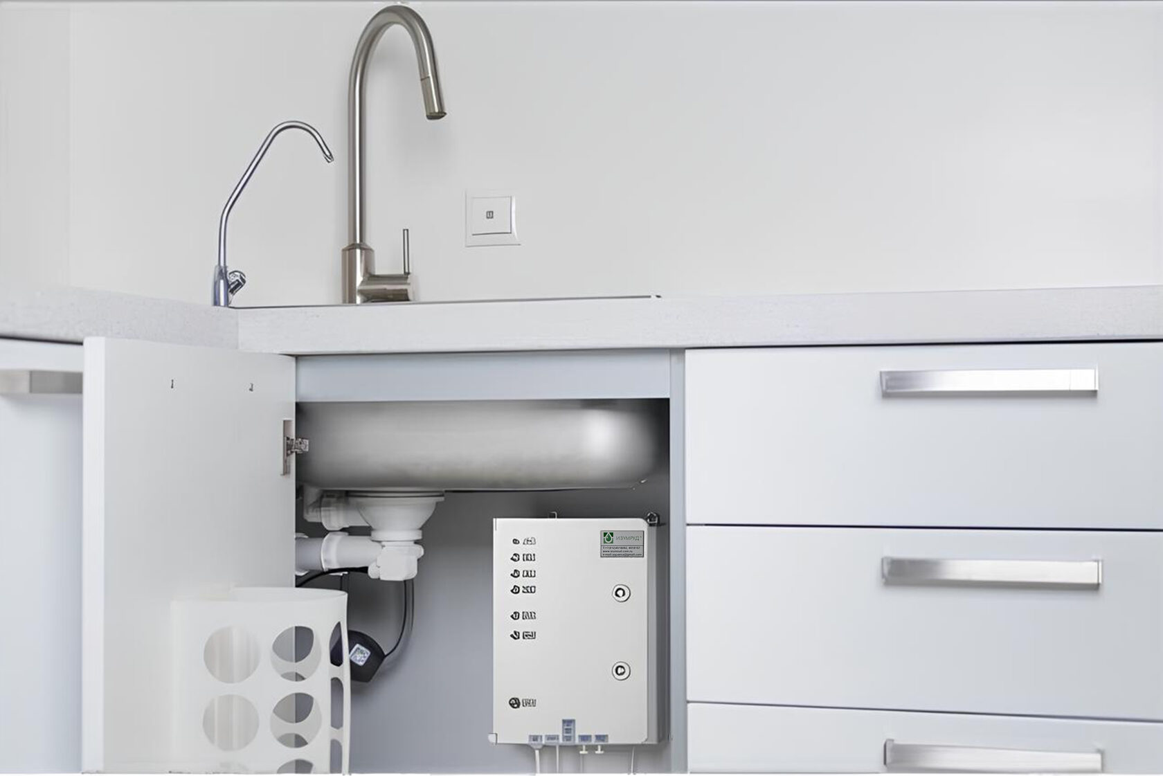 Активатор воды "Изумруд" компактно размещается под мойку. Подключение John guest 1/4.